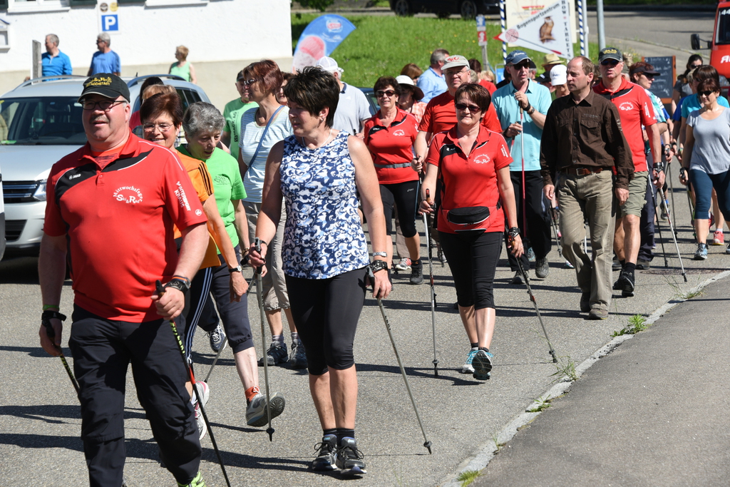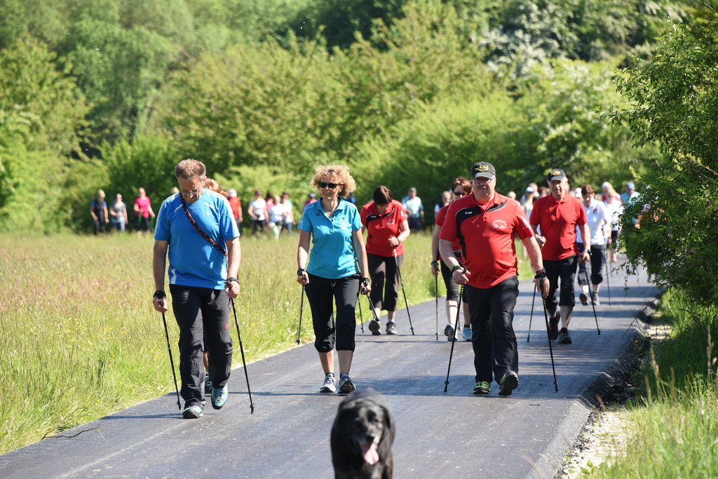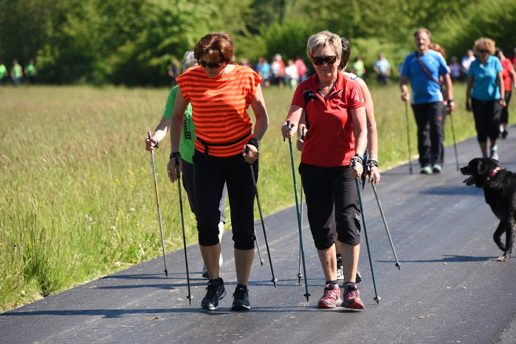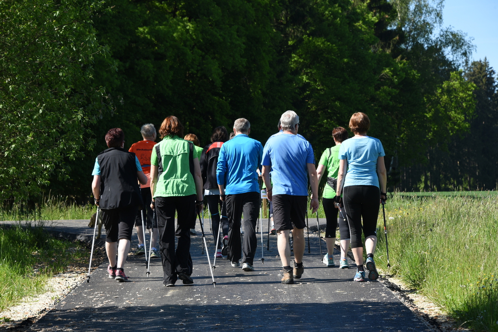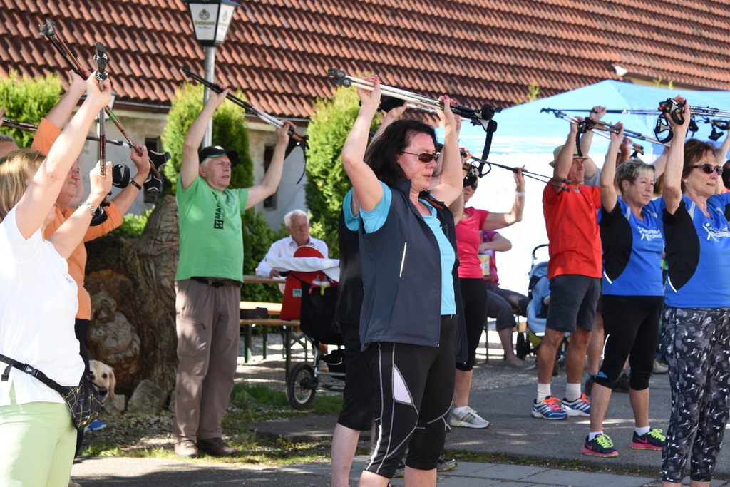 Bei herrlichem Sommerwetter starteten die Aschbergfüßler am 22. Mai in die Nordic Walking Saison. Ca. 100 Teilnehmer gingen nach der Begrüßung durch 2. Bürgermeister Simon Peter und einem flotten Aufwärmprogramm der beiden Trainerinnen Anni Hörmann und Manuela Rauch auf die beiden rund 7 bzw. 14 Kilometer langen Rundkurse.